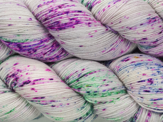 This line of fingering-weight yarns is the basis for a million and one soft, pliable, and uniquely colorful projects. Hold it with our Mo'Hairball offerings when you knit or crochet, and marvel at the stunning and fuzzy end result! (NOTE: Items marked "Dyed to Order" require 3-6 weeks for delivery)